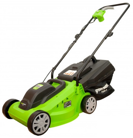 Электрическая газонокосилка GreenWorks GLM1232 2502207 - легкая модель для скашивания небольшого участка (до 6 соток). Проста в эксплуатации. Работает от сети 220 В. Выполняет мульчирование (измельчение травы) и сбор травы в травосборник. Можно отрегулир