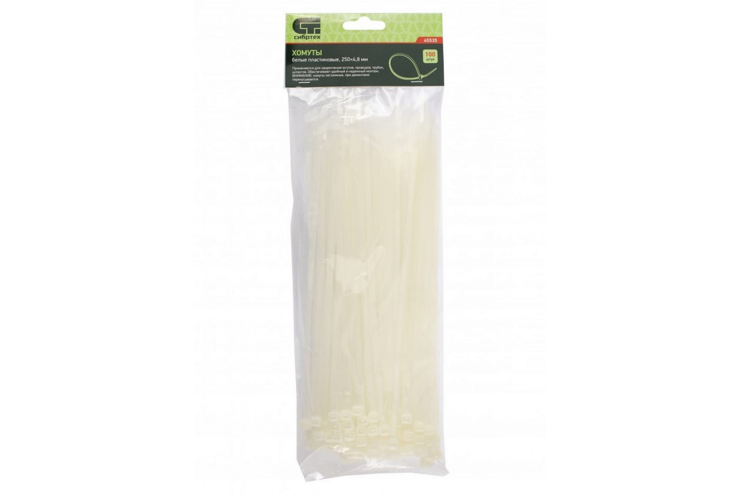 Хомуты, 250 * 4,8 мм, пластиковые, белые, 100 шт. Сибртех