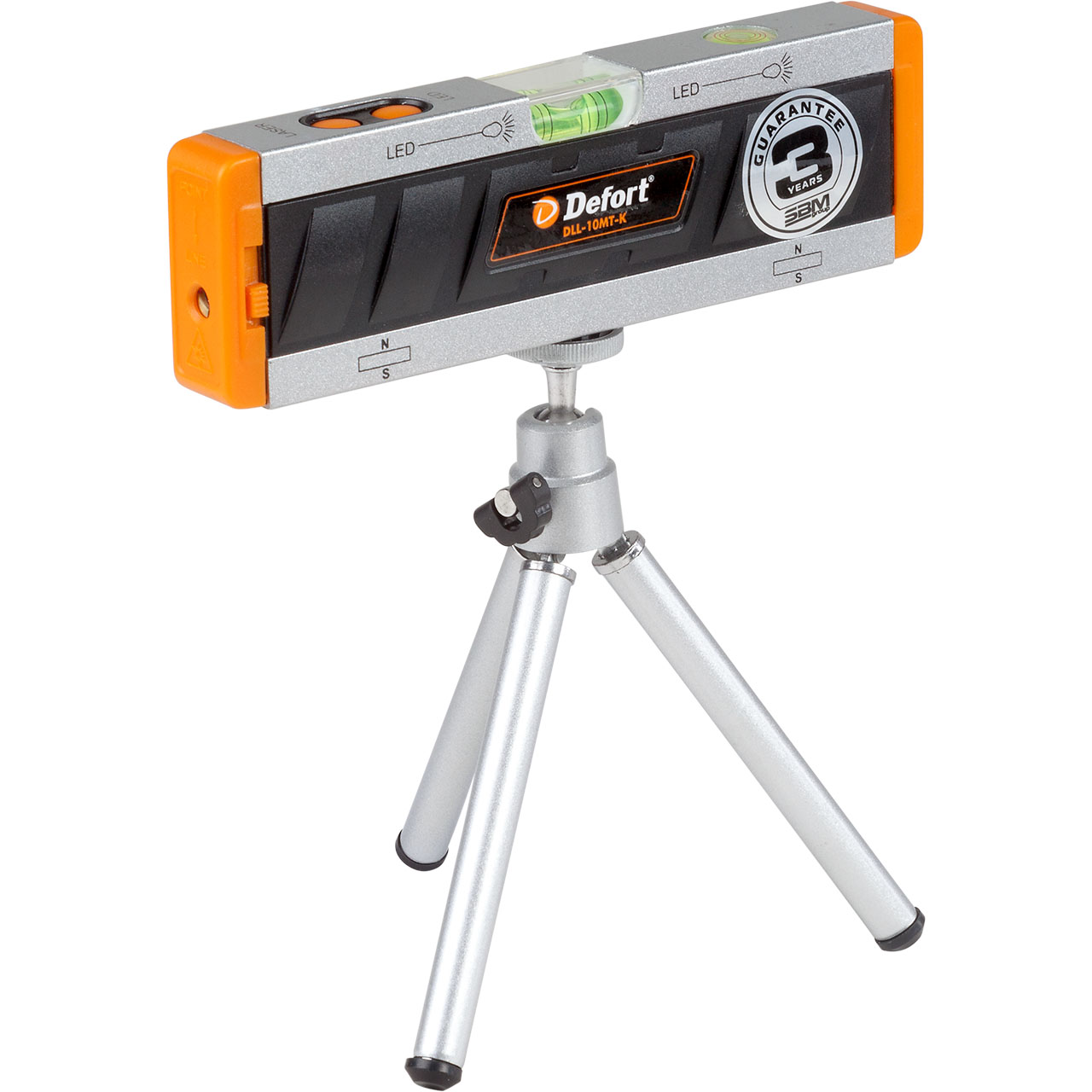 Лазерный уровень DEFORT DLL-10MT-K 98293555 позволяет выравнивать плитку, фоторамку или обои строго по вертикали и горизонтали. Модель применяется в строительной, ремонтно-отделочной и бытовой сферах. Устройство экономно расходует энергию: для его питани