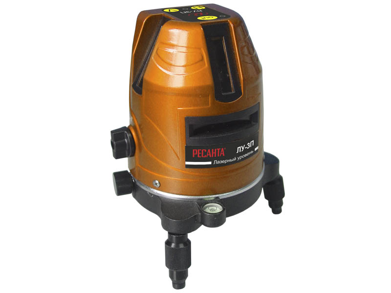 Лазерный уровень Ресанта ЛУ-3П 61/10/518 проецирует 2 вертикальные линии, 1 горизонтальную линию и точку отвеса. Он может использоваться как внутри помещений, так и на улице.