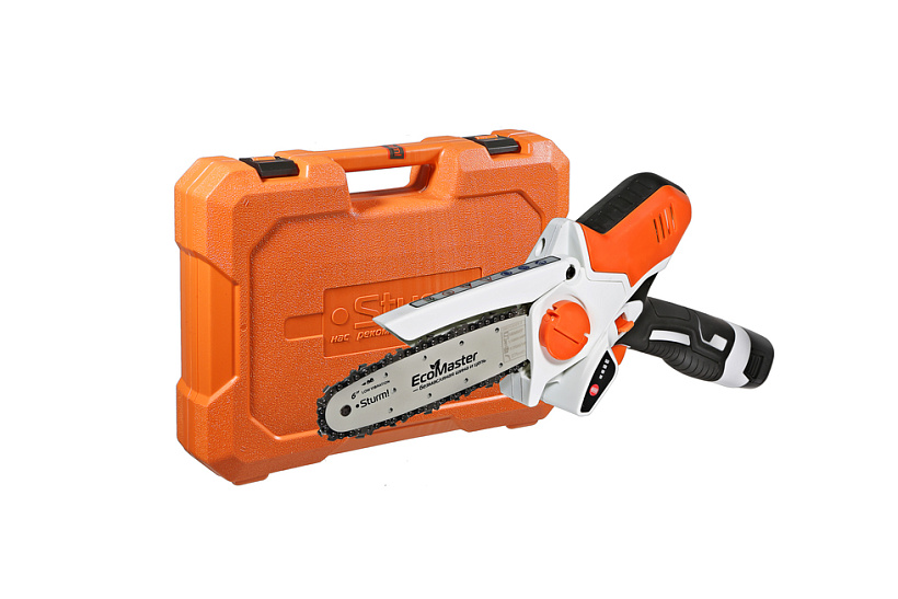 Аккумуляторная цепная пила Sturm! CSC18061 прекрасно справится с обрезкой веток деревьев и простыми столярными работами.
