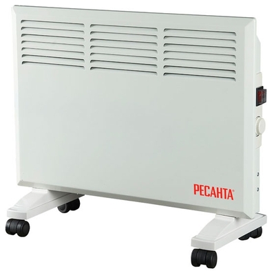 Конвектор Ресанта ОК 1000 может быть установлен напольно на специальные ножки или настенно. Данный обогреватель имеет два режима мощности: 500 и 1000 Вт.