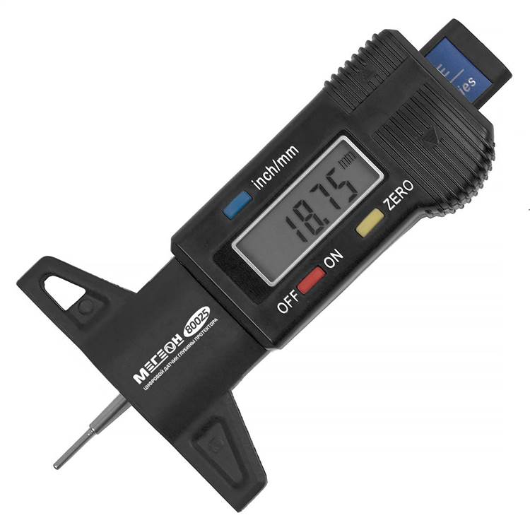 Ручной цифровой глубиномер МЕГЕОН 80025 предназначен для измерения глубины отверстий в диапазоне от 0 до 25 мм, с дискретностью отсчёта – 0,01 мм. Также можно проверить глубину протектора легковых автомобилей, мототранспортных средств или велосипедов. Из